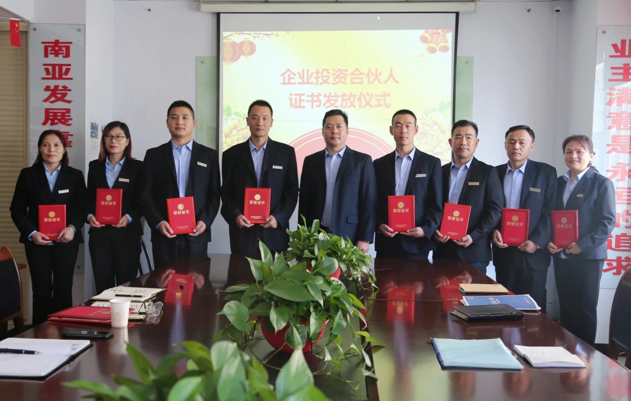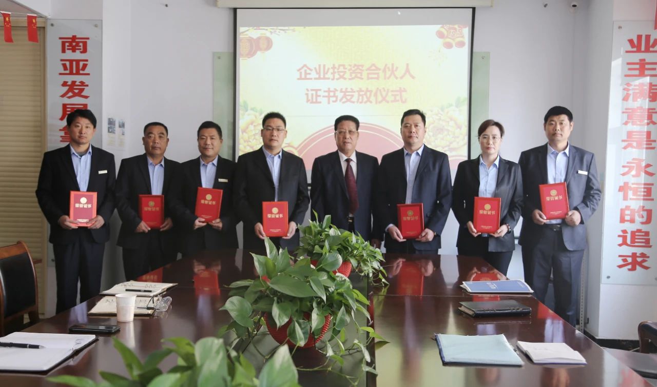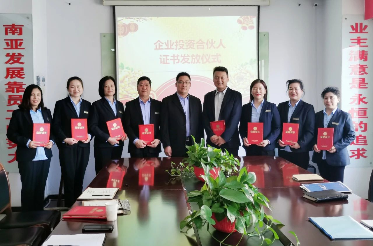 會(huì)上,由集團(tuán)財(cái)務(wù)部經(jīng)理宣讀了企業(yè)管理合伙人名單,集團(tuán)董事長劉守貴、副董事長劉建忠、總經(jīng)理王飛分別向管理合伙人發(fā)放企業(yè)管理合伙人證書,并與他們一起拍照留念。