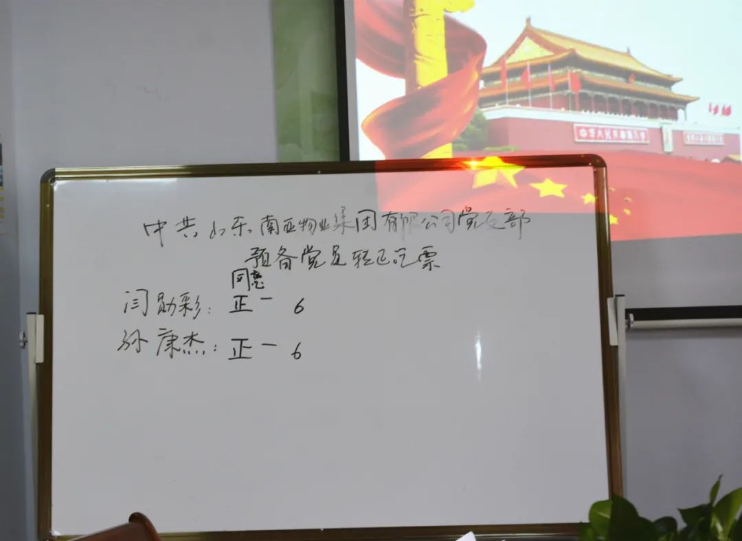 大會討論了閆勛彩、孫康杰同志的轉(zhuǎn)正申請。大會有表決權(quán)的黨員6名,應到會6名,實到會6名。大會采取無記名投票的方式進行了表決。其中:對閆勛彩和孫康杰兩位同志的投票結(jié)果分別為6票贊成,0票反對,0票棄權(quán),符合規(guī)定。大家一致認為:閆勛彩、孫康杰兩位同志均已具備正式黨員的條件,同意按期轉(zhuǎn)為正式黨員。