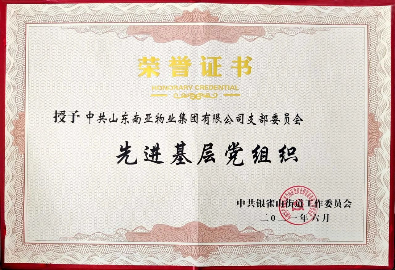 2021年6月26日,在銀雀山街道舉辦的學(xué)黨史、頌黨恩、跟黨走—慶祝建黨100周年文藝演出暨先進基層黨組織、優(yōu)秀共產(chǎn)黨員表揚大會上,中共山東南亞物業(yè)集團有限公司支部委員會被授予“先進基層黨組織”榮譽稱號,出資人黨員劉守貴同志被授予“優(yōu)秀共產(chǎn)黨員”榮譽稱號,這是上級黨組織對于我們“堅持黨建引領(lǐng)、打造沂蒙紅色物業(yè)”工作的肯定。下一步,我們將在黨支部書記王飛同志的帶領(lǐng)下,以“三化”支部工作法為基礎(chǔ),積極探索新形勢下的黨建工作,結(jié)合物業(yè)服務(wù)工作中的實際問題,強化黨建引領(lǐng)作用,履職物業(yè)服務(wù)初心,踐行物業(yè)行業(yè)使命,加強黨組織和黨員隊伍的管理,提升南亞品牌美譽度,做物業(yè)服務(wù)標桿企業(yè),為企業(yè)的進步和行業(yè)的發(fā)展貢獻新的更大的力量。